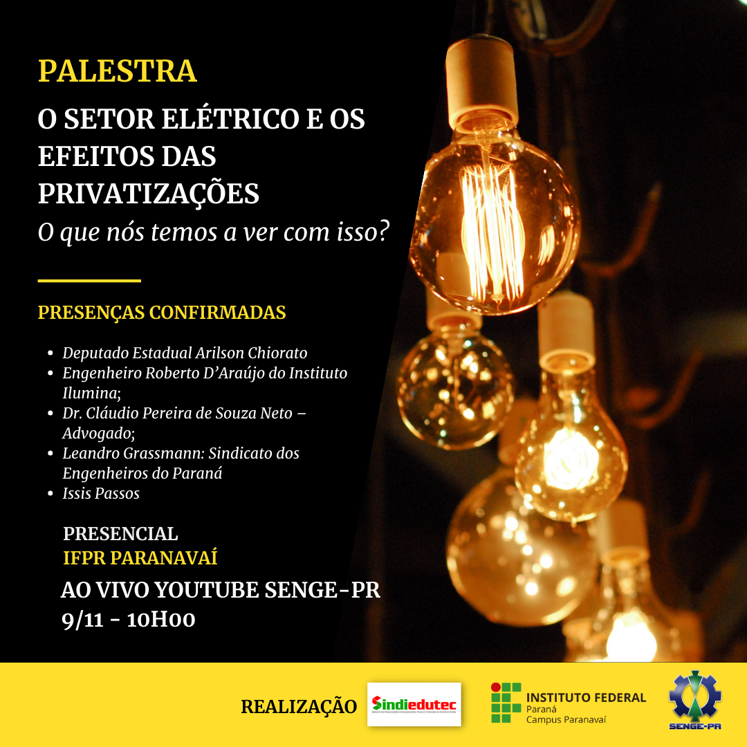 Live: Privatização do setor elétrico é tema de debate em Paranavaí